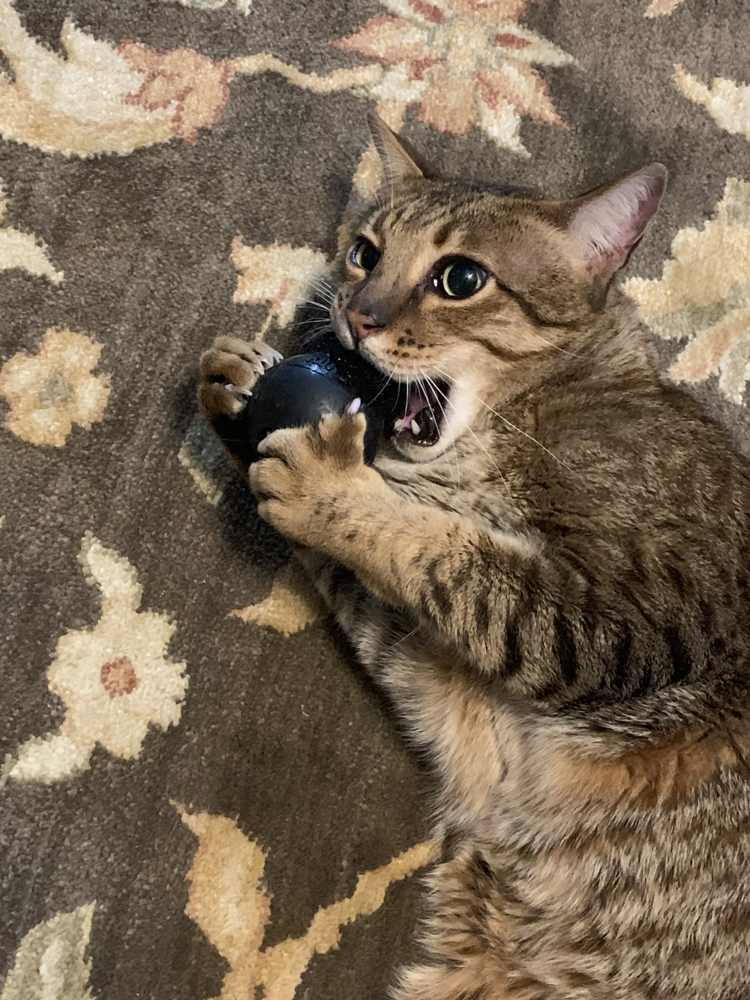 Max is a Bengal mix with the heart of a rebel and an appreciation of all things chewable. Allegedly Harley’s brother (though both deny it), Max believes sibling rivalry is a full-contact sport—and practices regularly.